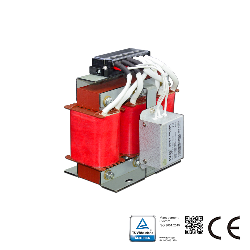 Dv/dt filters Description The SIKES DV/DT filters decreases the insulation stress of motors by lowering the dU/dt value of the variable speed drive output voltage. It can be utilized with cable lengths up to 100 to 300 m depending on the model. Moreover, the units are intended for maximum switching frequency of 200 kHz. The filters create less heat with smaller switching frequencies. The motor is not intended for utilizing with a variable speed drive to retrofit applications. Du/Dt filter is economical alternative for Sine wave filter.